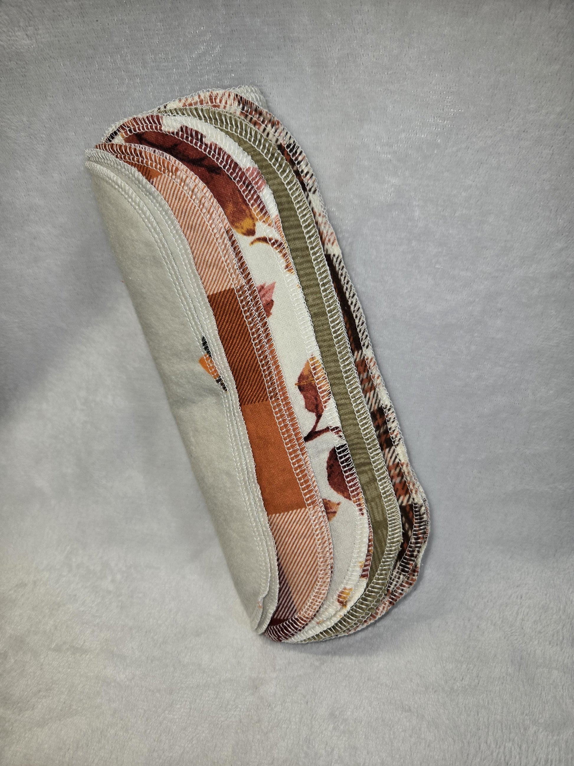 100% Cotton flannel. 10 pack of reusable paper towels. 2 of each pattern. All fabric is preshrunk.