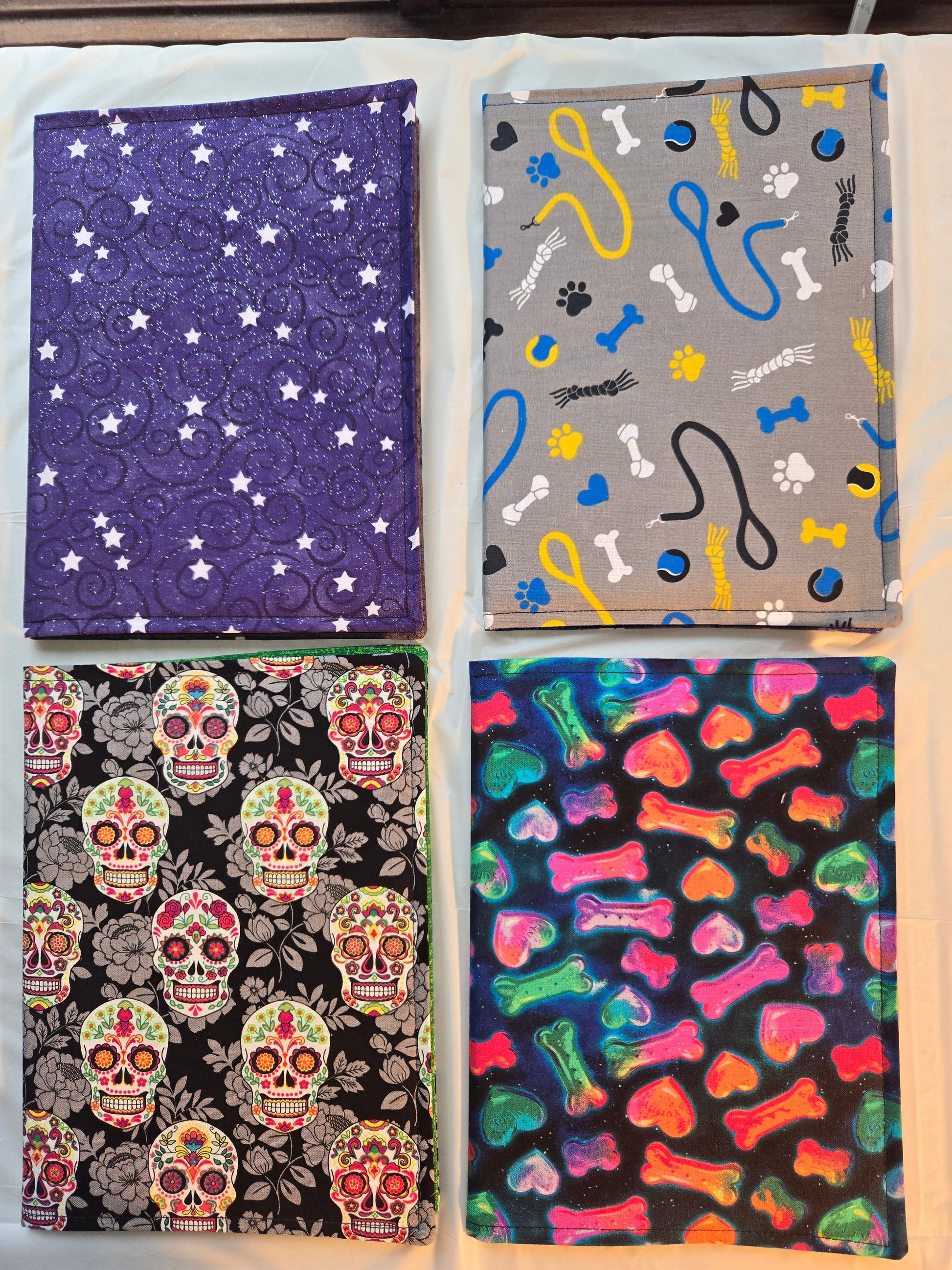 Reusable fabric cover for your composition books. Fits standard size used in schools. Composition book is included.
