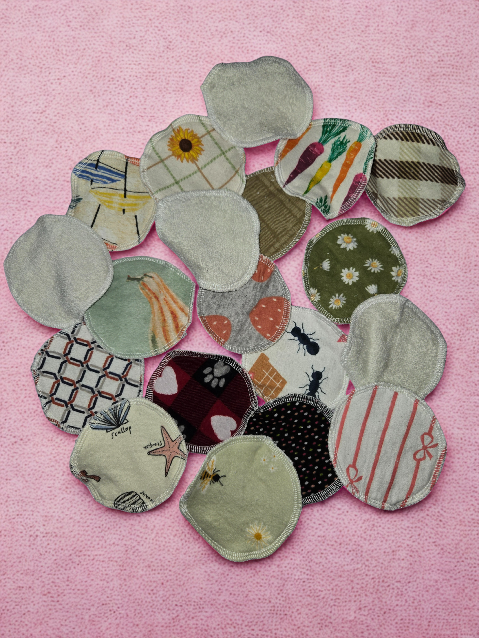 100% Cotton flannel and Terry cloth. Very absorbent for removing make-up or washing your face. Reusable. 4" wipe.