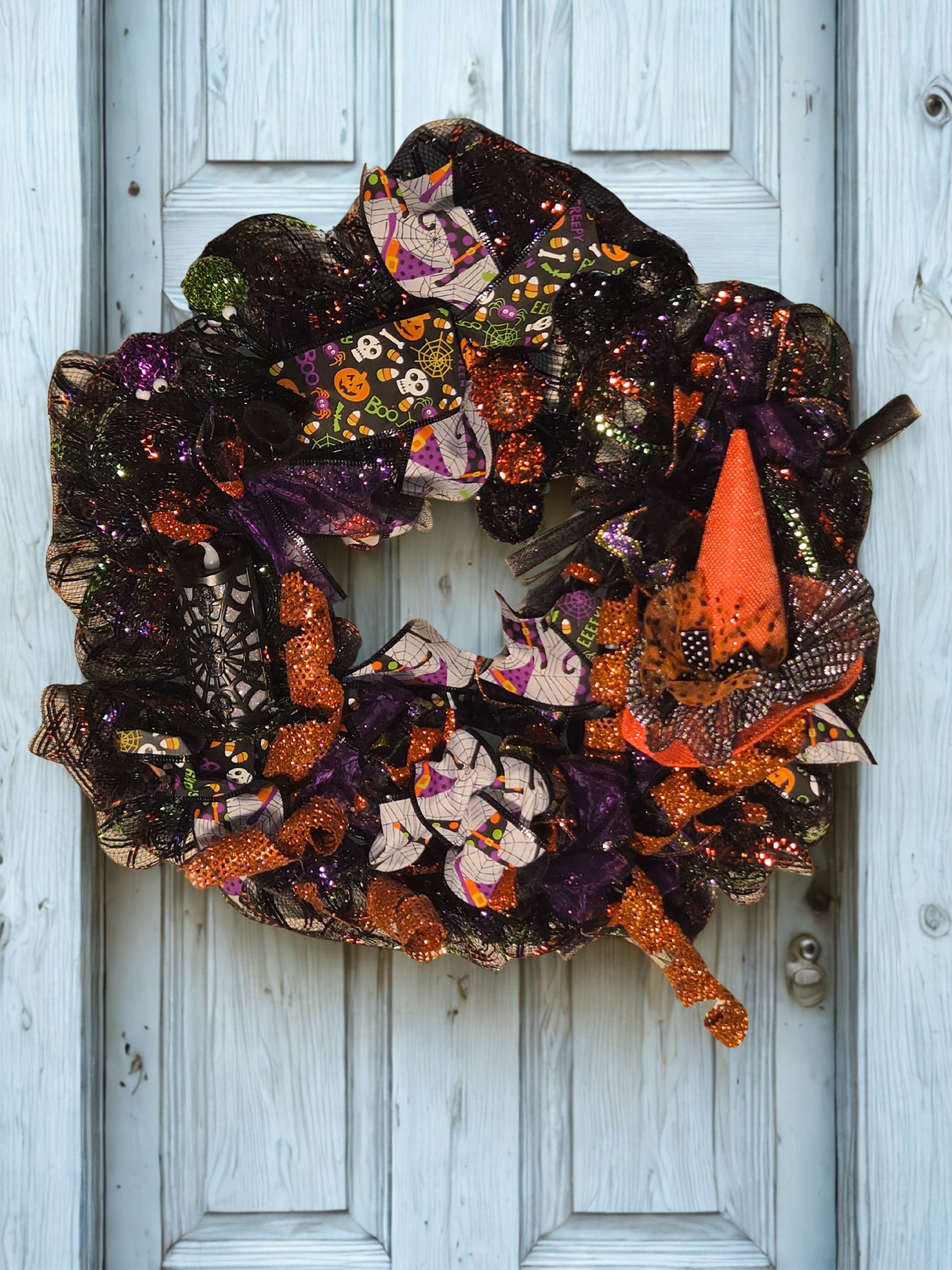 Traditional Halloween colors with light up candle. All wreaths made are unique.